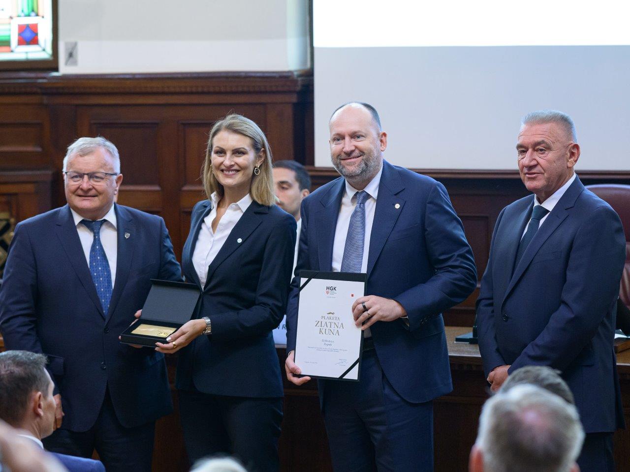 Na svečanoj sjednici Gospodarskog vijeća HGK Komore Zagreb dodijeljene su Zlatne plakete najuspješnijim tvrtkama u Zagrebu i Zagrebačkoj županiji za ostvarene poslovne rezultate u 2024. godini.