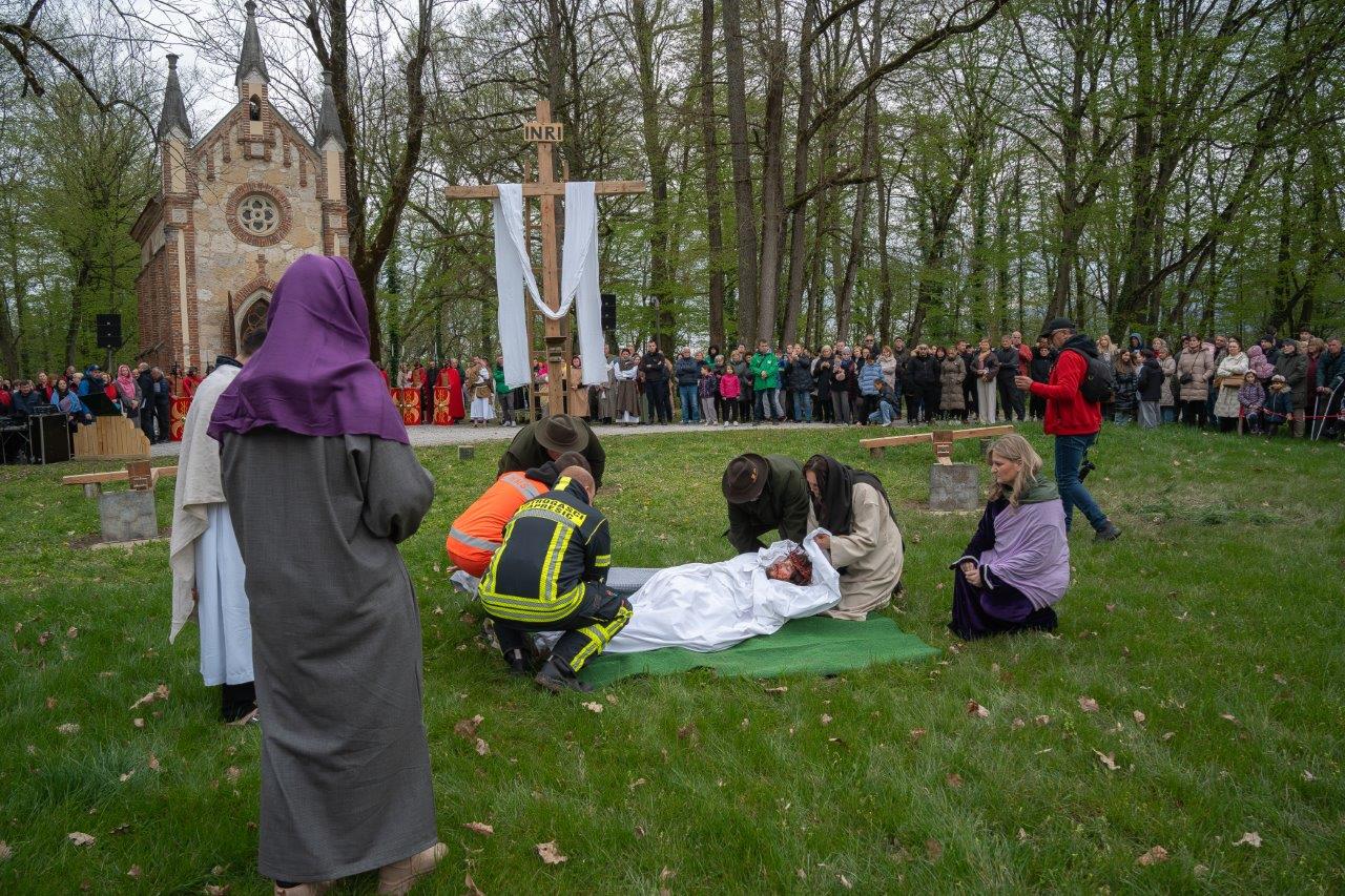 „Kroz 18 godina djelovanja Udruge, uprizorili smo Kristovu muku u raznim župama diljem Hrvatske i zato od srca zahvaljujem svim našim članovima na ustrajnosti, vjeri i ljubavi koje su kroz sve ove godine uložili u ovo djelo. Želim nam svima da nas ovo uprizorenje ne ostavi samo kao promatrače, nego neka nas potakne da u svojim srcima dublje razumijemo Kristovu ljubav i žrtvu, te da tu ljubav prenosimo jedni drugima u svakodnevnom životu“, poručio je predsjednik Stepinčeve oaze mira Ilija Nikolić. Posebnu zahvalu uputio je zaprešićkim vatrogascima, zdravstvenim djelatnicima, policiji i lovcima koji su uvijek uz zajednicu kada je to najpotrebnije, a koji su u ovom uprizorenju i aktivno sudjelovali položivši Isusovo tijelo u grob.