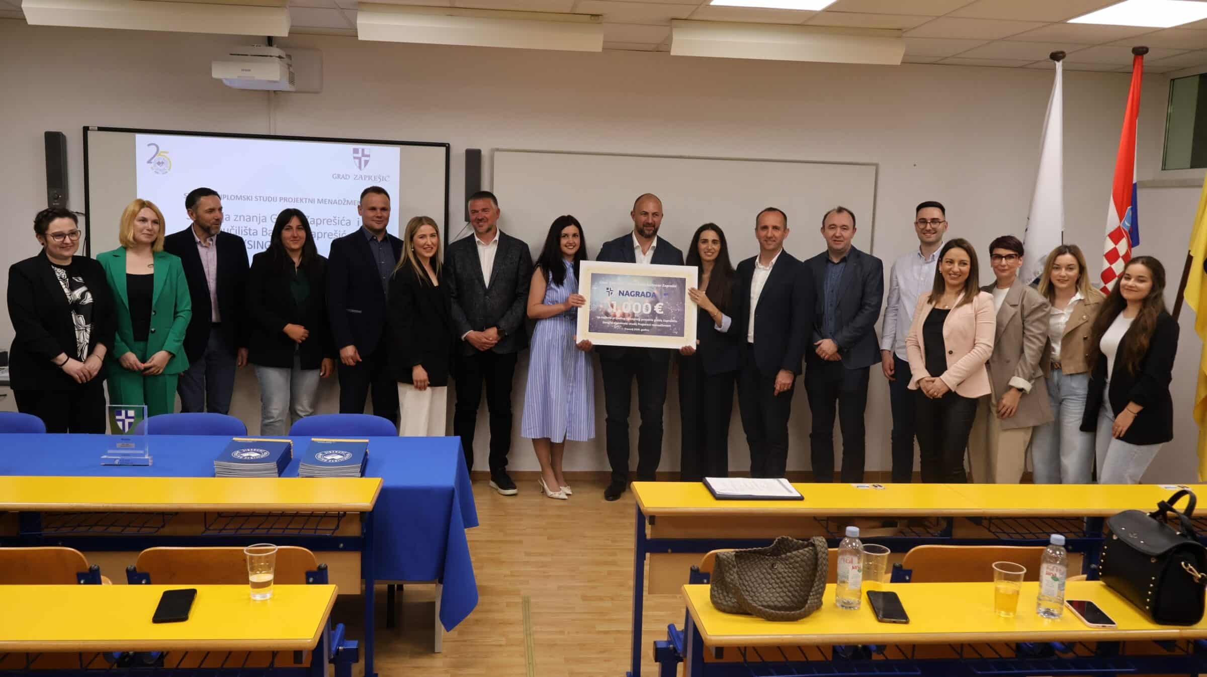 Svim studentima koji su sudjelovali u projektu dodijeljene su i Potvrde Grada Zaprešića koje će iskoristiti u kontekstu reguliranja stručne prakse na studiju Projektni menadžment, dok je pobjednički tim dodatno nagrađen i prigodnom novčanom nagradom Grada. Ova gesta priznanja i podrške od strane Grada ističe važnost i vrijednost projekta “SING” te potiče studente na daljnje usavršavanje i angažman u području projektnog menadžmenta. Stručni diplomski studij Projektni menadžment kreiran je tako da pruža studentima priliku primijeniti teorijska znanja iz područja projektnog menadžmenta u stvarnom okruženju, potičući kreativnost, timski rad i praktične vještine koje su ključne za uspješno vođenje projekata u njihovim budućim profesionalnim karijerama.